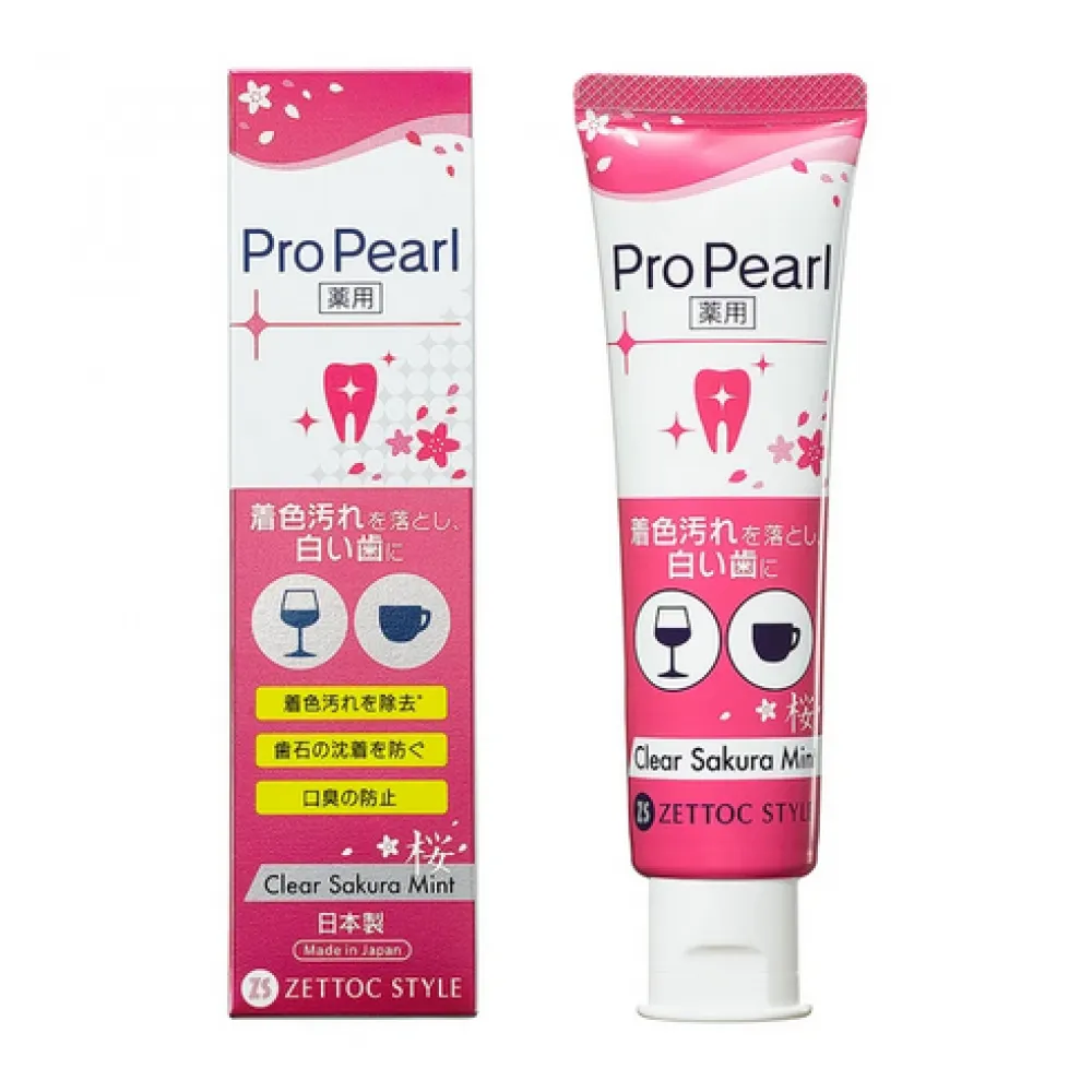 Pastă de dinți Zettoc ProPearl Sakura Mint Sakura și mentă, 100 g. Pasta complexă este convenabilă pentru utilizare zilnică, are un volum mare. Componentele principale PEG-8 și siliconul îndepărtează petele de pe smalț fără a afecta, menținând în același timp sensibilitatea, albesc intens dinții, curăță în profunzime placa dintre dinți, prevenind formarea tartrului în locurile greu accesibile. Datorită extractului de sakura și mentă, este asigurată prospețimea respirației după utilizare.
